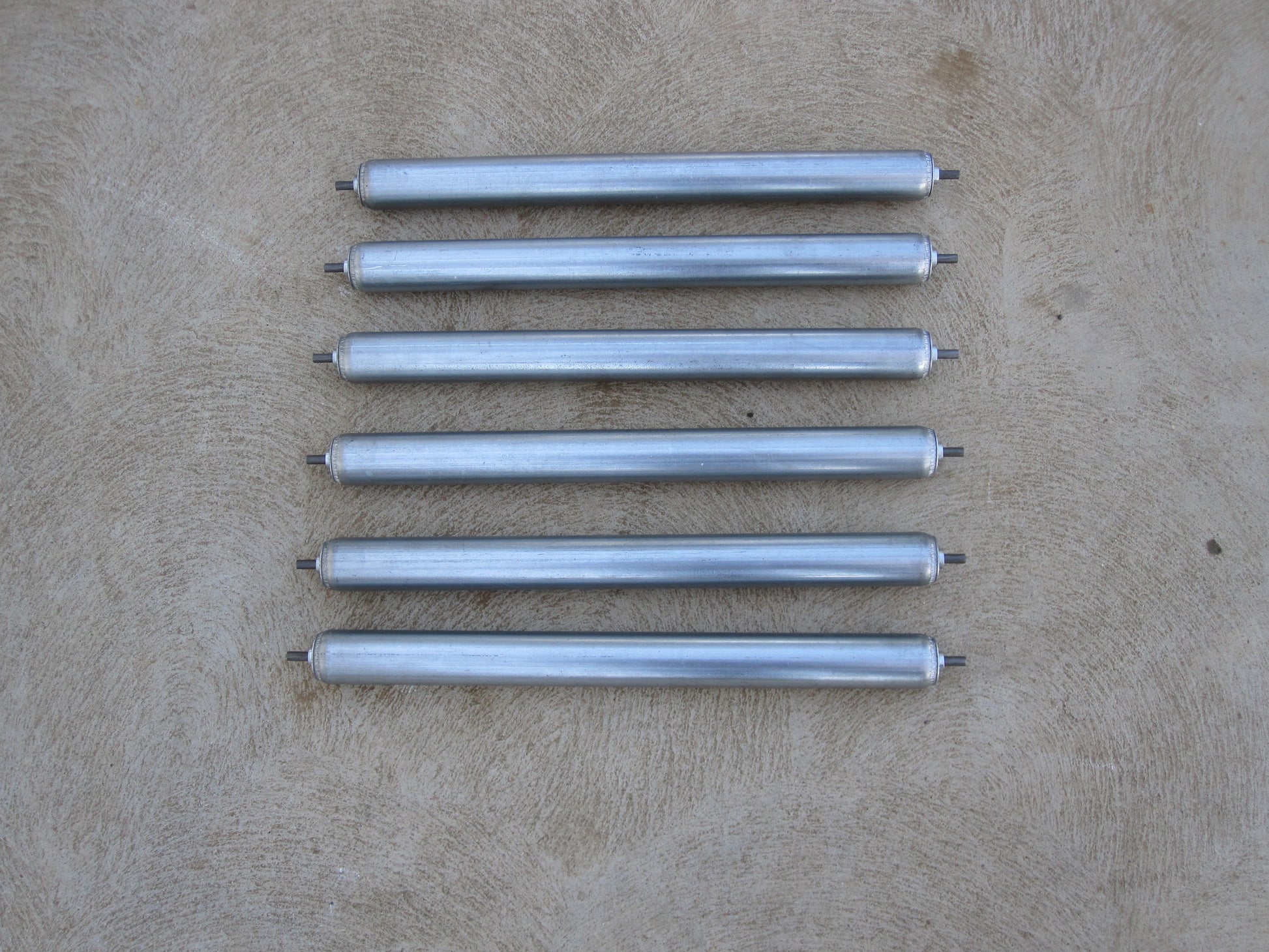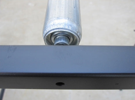 Lee Unlimited Power Bench® Bench rollers are special made to fit the Lee Unlimited Power Bench®. The rollers make it easier to move and position material.  The way they are designed, they are in a straight line with your saws unlike individual rollers that tend to pull your material in a different direction than you want. They are 1 ¼ inch and fit in the 1 inch tubing, 1/8 inch above the top of the cross members. The bench rollers are spring-loaded. They can easily be placed in or out as simple as changing a roll of toilet paper!  Except you have to use a small screwdriver inserted thru the outer hole to release the pin. Rollers are bearing steel rollers.  You drill a ¼ inch hole to put the rollers in where you want them or call and get a special ordered drilled Power Bench®. The bench rollers are the shorter rollers that fit only in the Power Bench® itself.