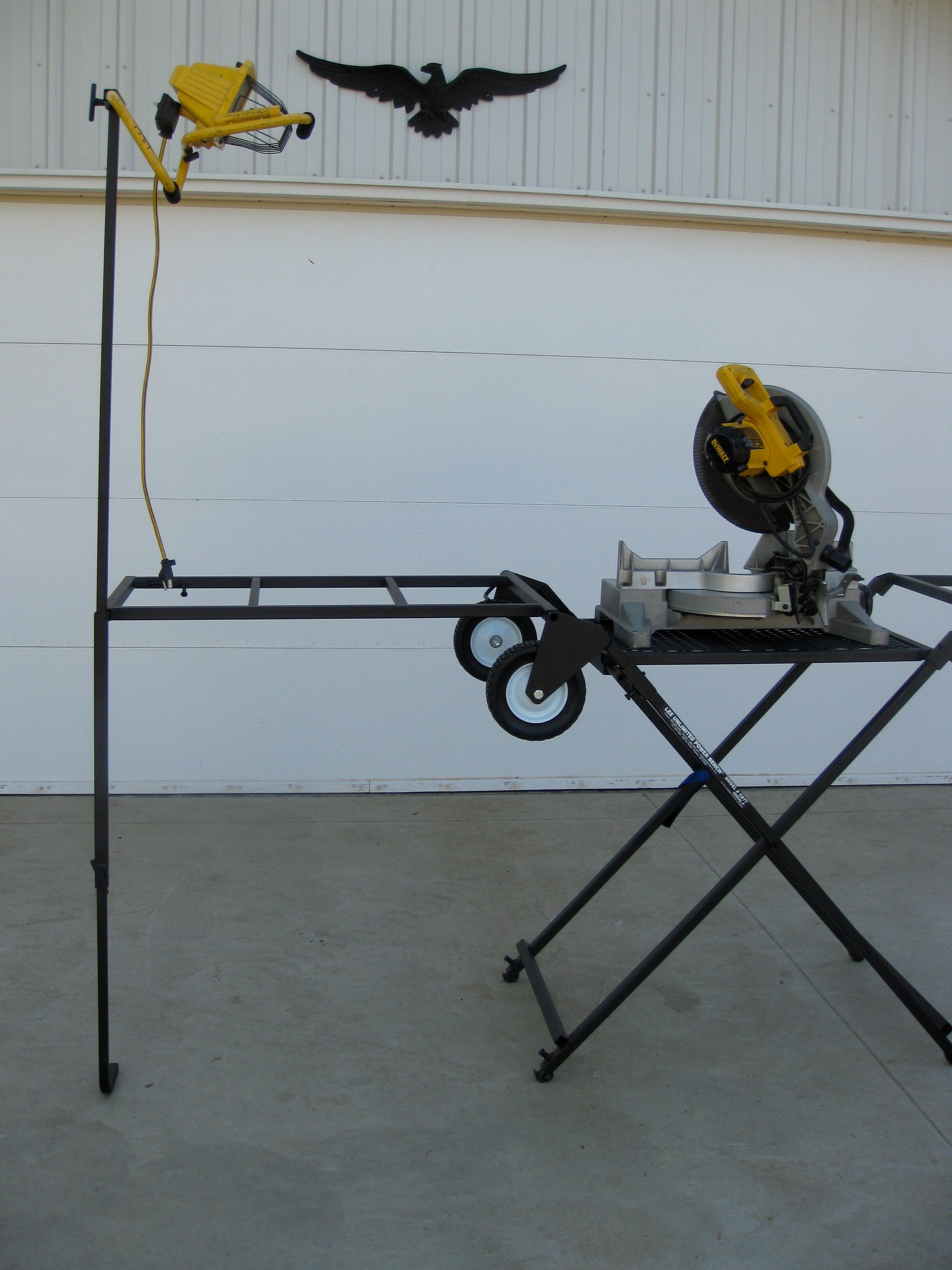 The Lee Unlimited Power Bench® Light Brackets fit in the outer legs of the Power Bench® after it is set-up. After the Power Bench® is set up and the light bracket is installed, simply insert your halogen light or other light in the open end of the light bracket and tighten it down at the angle you want. You may place this on either end or both ends so as to have great lighting that will shine down on your work or project and not in your eyes. You can also add a power strip to the side of the light bracket. So you have light and power where you need it.